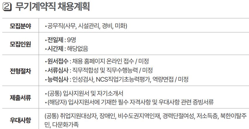 1. 채용 직무 : 공무직(사무, 시설관리, 경비, 미화).