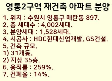 영통2구역 재건축 아파트 분야정보를 알려드렸는데요.