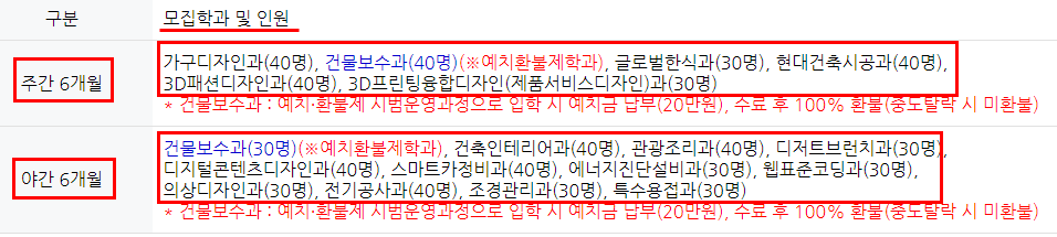 이렇게 교육 훈련 모집학과가