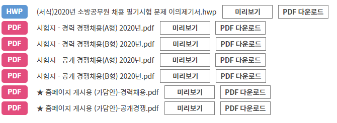 아래 소방청 홈페이지에서 제공하는 소방 공무원 필기시험