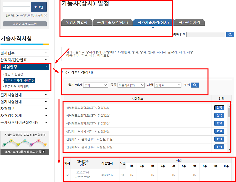 국가기술자격 상시 일정 종료 본인이 원하시는 시험 접목을 클릭하시고 해당 지역에서 시험 장소와 일정은 참고하시면 되겠습니다.