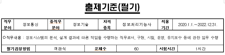 2020 전기기능사 필기 시험 출제 기준은 정보 시스템 분석 설계 결과에 따라서 구현 시험 운영 등 다양한 업무 수행에 관한 이론적인 필기시험을 객관식 60 문항은 1시간 내에 보셔야 합니다.