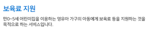 위에 해당 포스팅 자료는 보건복지부 복지로 홈페이지 “보육료” 안내 페이지에서 참조하였습니다.
