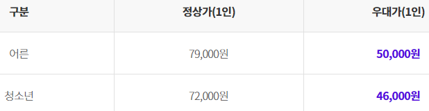 1. 어른 정상가는 79,000원이고 우대가는 50,000원입니다.