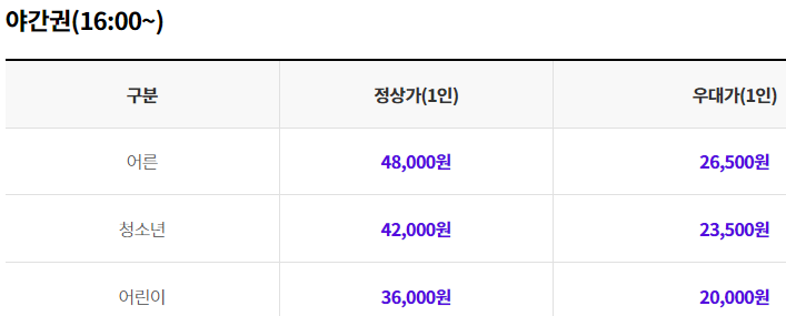 야간 자유이용권을 26,500원에도 할인받아서 입장하실 있는 방법을 알려드리겠습니다.