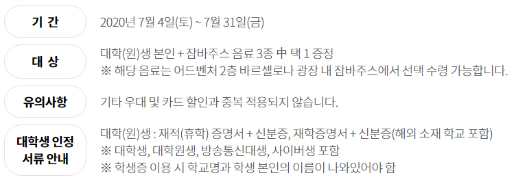 대학생 대학원생은 잠바주스까지 무료로 마시면서 입장할 수 있는 방법을 알려드릴께요.
