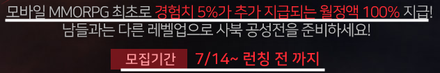 모바일 MMORPG 최초로 경험치 5% 추가 지급되는 월정액 쿠폰 제공