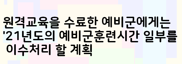 세번쨰. 그리고 참여자율형 원격교육을 받으면 2021년 예비군 훈련에서 일부 시간 인정을 해준다는건 어떤 혜택인지?