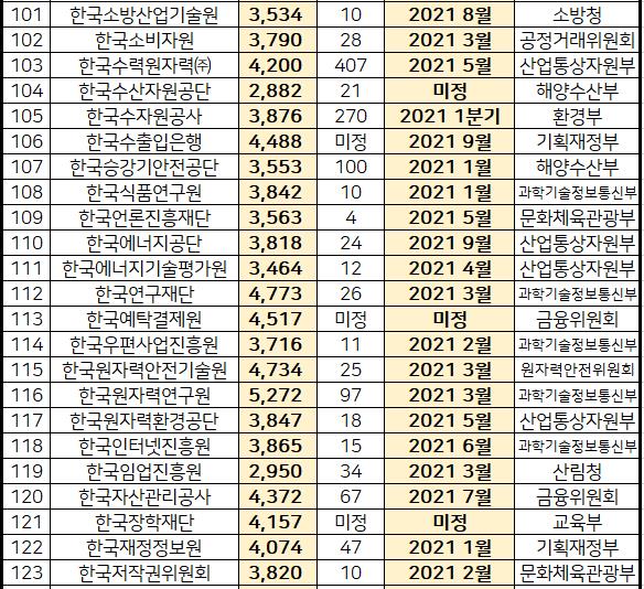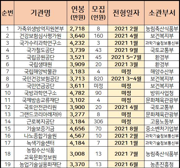 다양하 공기업들의 연봉표까지 확인하시기 바랍니다.
