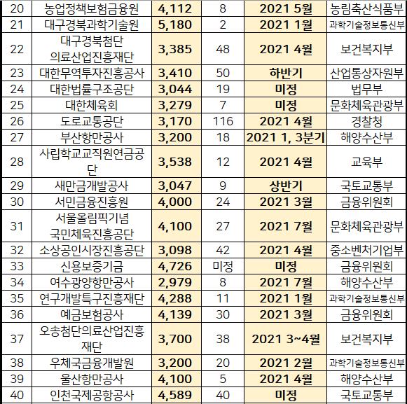 2021년 공기업 채용일정표를 기관이름 오른차순으로 정리하였습니다.