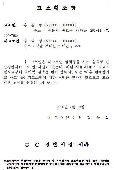 이렇게 고소취하서와 고소취하 협의서 작성방법, 양식을 모두 첨부해서 올려드렸습니다.