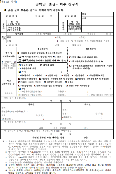 공탁금 계좌입금 신청서 양식 및 작성방법