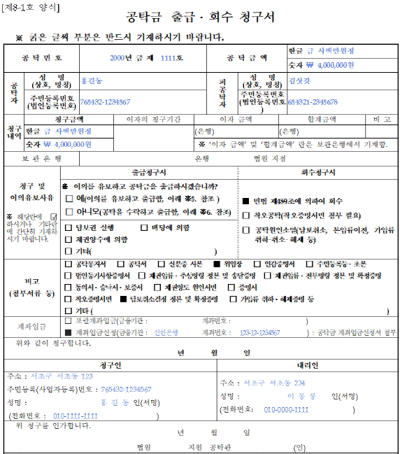공탁금 출금 회수 청구서 작성법을 살펴보겠습니다.