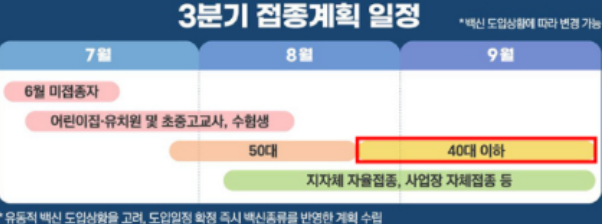 만18세부터 49세까지 성인대상으로 8월중에 코로나 백신 접종 일정이 잡혀있습니다.