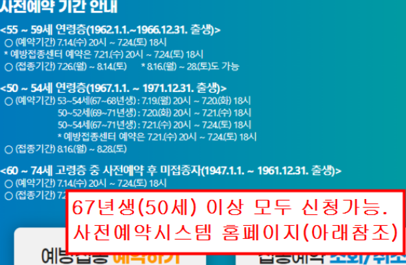 1. 67년생부터 68년생은 7월19일 월요일 20시부터 예약.