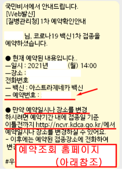 가장 보편적으로 콜놔 백신 접종시 문자로 예약완료 메세지가 갑니다.