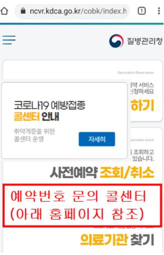 2. 질병관리청 혹은 사전예약 콜센터에 전화해서 조회해보세요.