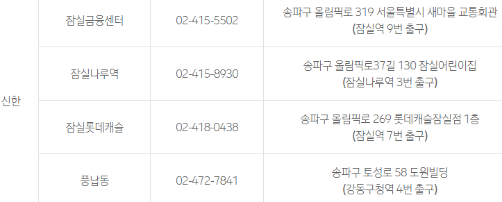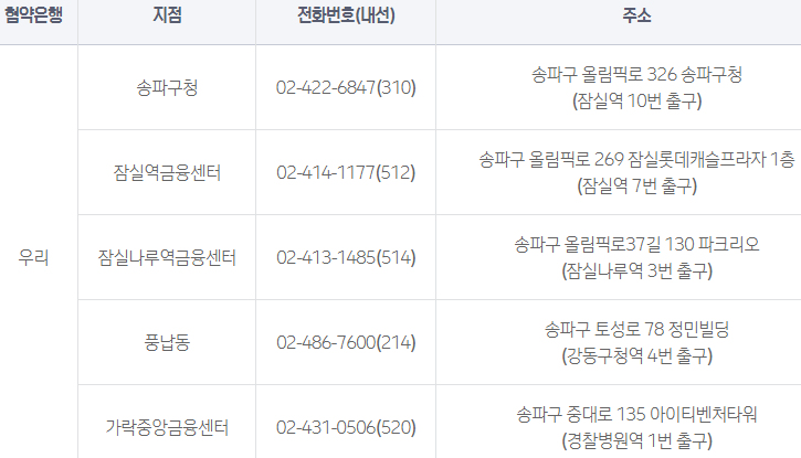 송파구에 있는 모든 우리은행과 신한은행에서 지원하는것이 아닙니다.