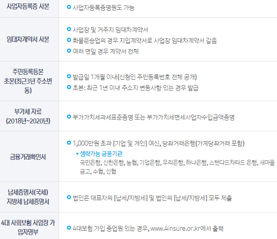 송파구 소상공인 무이자 융자지원금을 접수시 제출해야하는 신청서류는 다음과 같습니다.