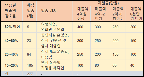 매츨감소 10%~20% 사업체는 최소 금액인 40만원이라도 받으실수있습니다.