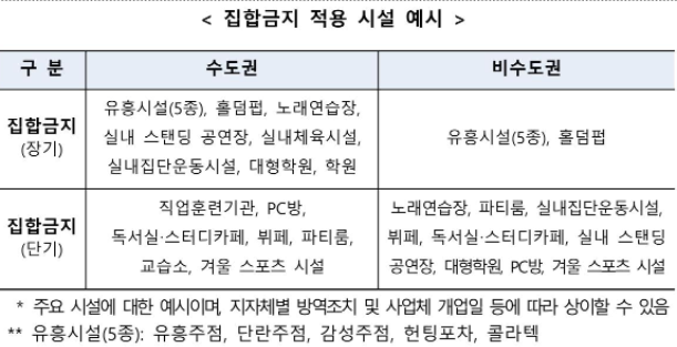 집합금지 업종의 경우에는 어떤 사업체가 있는지 아래 예시자료도 참고하세요.