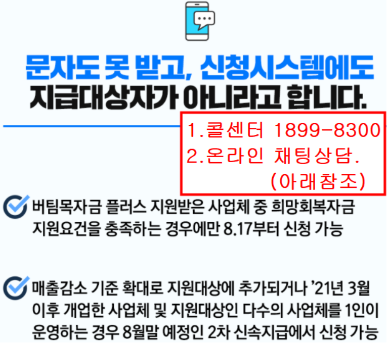 세번째. 행정누락이나 기타 오류사항 등으로 희망회복자금 콜센터 1899-8300으로 전화해서 상담 필요.