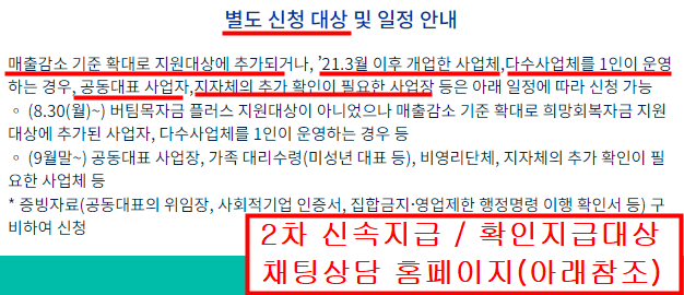아래에서 공식채팅상담 홈페이지와 2차 지급대상자, 확인지급자 등 신청일정및 방법을 알려드리겠습니다.