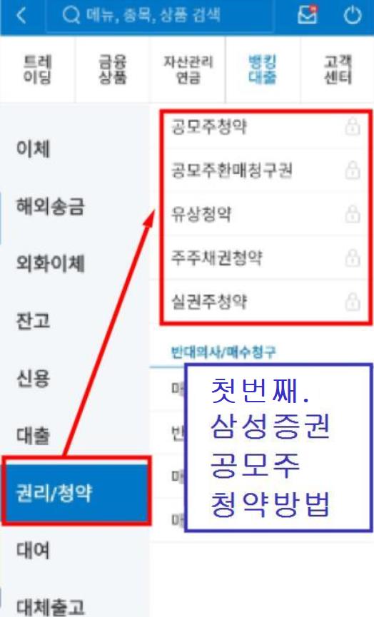 두번쨰. 초기화면에서 메뉴→권리청약→공모주청약에서 지원합니다.