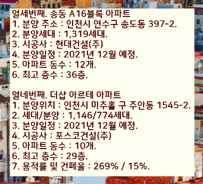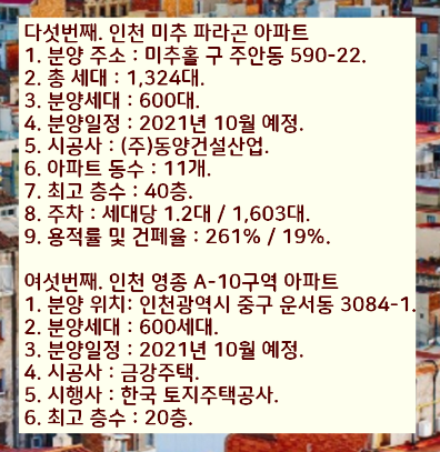2021년 10월에서 12월까지 인천에서 분양 예정인 아파트들을 정리하였습니다.