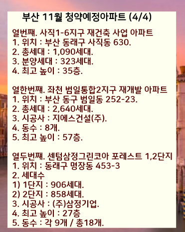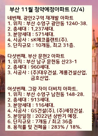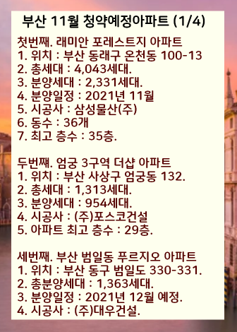 2021년 남은 10월부터 12월까지 부산에서 분양예정인 아파트과 분양일정 미정인 단지들까지 모두 살펴보겠습니다.