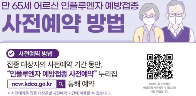 인플루엔자 사전예약 홈페이지(ncvr.kdca.go.kr)에서 확인하세요.