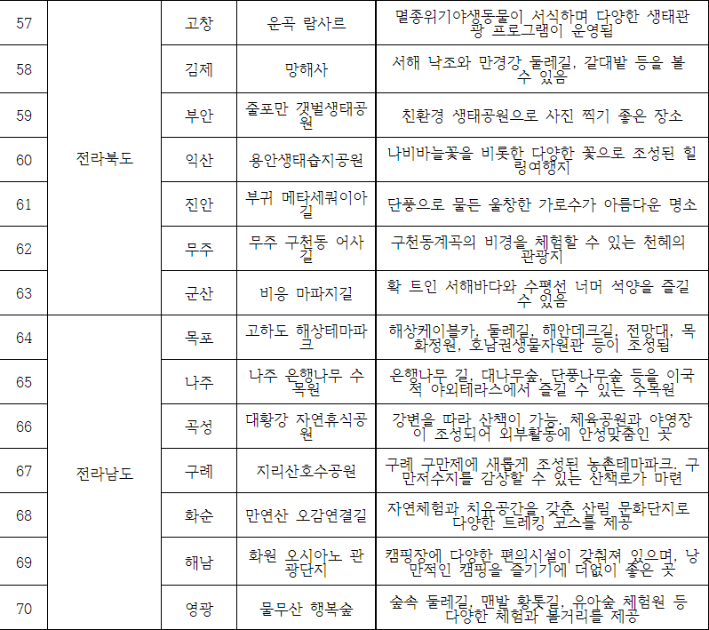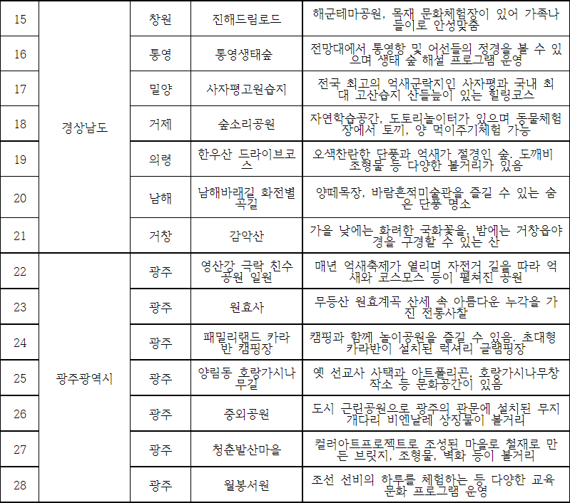 또한 한국관광공사 보도자료에서 출처 참고한 대표적인 비대면 여행하기 좋은곳 100곳을 알려드렸습니다.