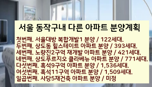 8. 동작구 다른 아파트 분양계획 : 아래참조.