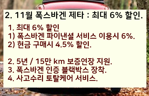 티록 폭스바겐 11월 프로모션 할인사항을 알아봤습니다.