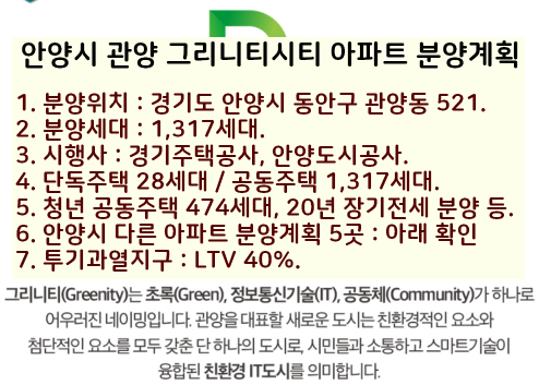 안양시 관양 그리니티시티 아파트 공공분양 계획을 확인하세요.