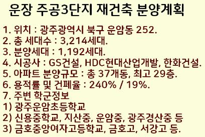 광주 운암 주공3단지 아파트 재건축 분양계획을 정리했습니다.