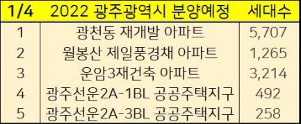 2022년이후에 광주광역시에서 분양예정인 아파트들도 표로 정리했습니다.
