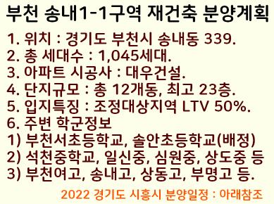 부천 송내1-1구역 재건축아파트 분양계획을 정리하였습니다.