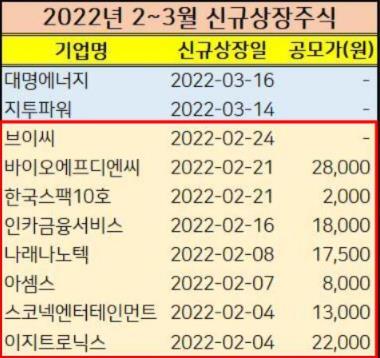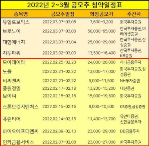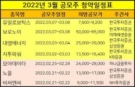 2022년 1월2월~3월에 IPO 공모주 청약일정을 표로 정리했습니다.