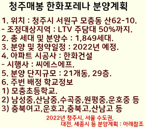 2022년에 분양예정인 청주매봉 포레나 아파트 분양계획을 정리했습니다.