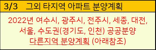 아래 2022년 여수시, 광주시, 서울, 경기도, 인천, 전주시 아파트 분양계획도 참고하시기 바랍니다.