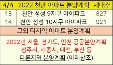 아래 2022년 천안, 경기도, 서울, 청주, 세종, 대전 등 분양계획를 참조하세요.