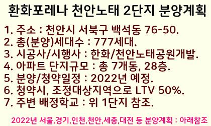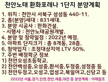 환화 포레나 천안노태 1단지와 2단지 아파트 분양계획을 정리했습니다.