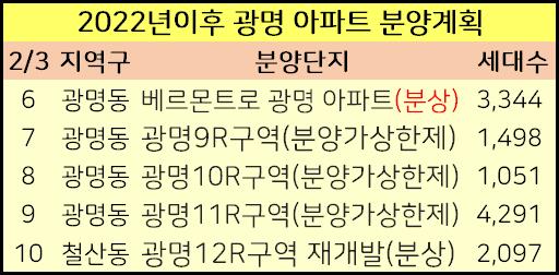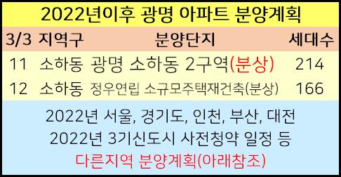 2022년이후 광명시 분양예정 아파트들을 정리했습니다.