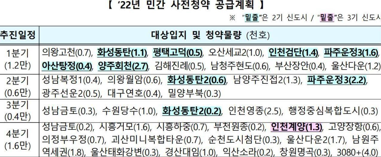 2022년 3기 신도시 사전청약 일정
