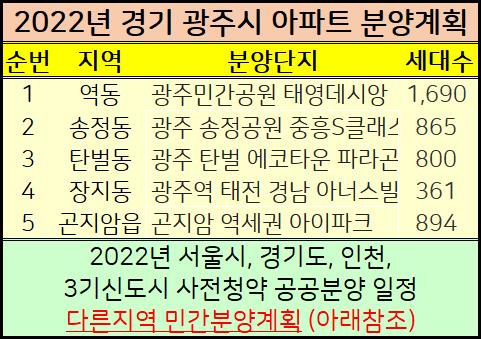 아래 2022년 성남시,광주시,남양주,구리시,서울 아파트 분양일정도 같이 참고하세요.