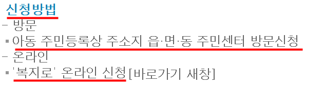 보건복지부 '복지로' 양육수당 신청사이트에서