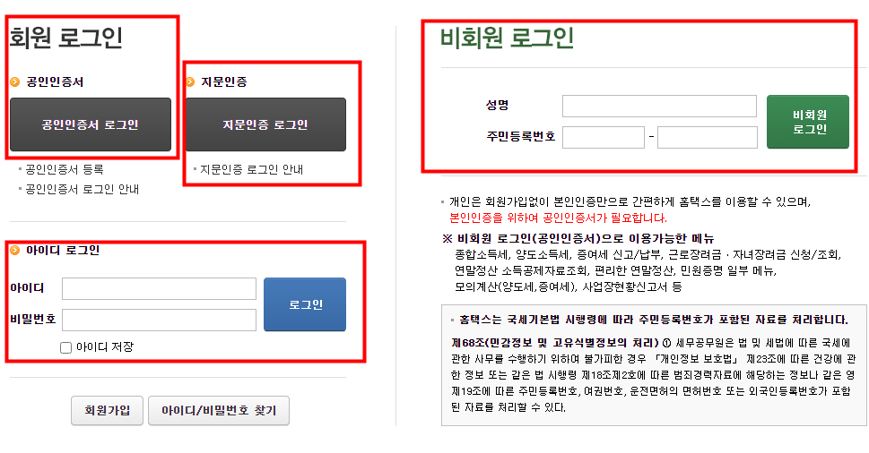 국세청 홈택스에서 로그인만 하셔도되고