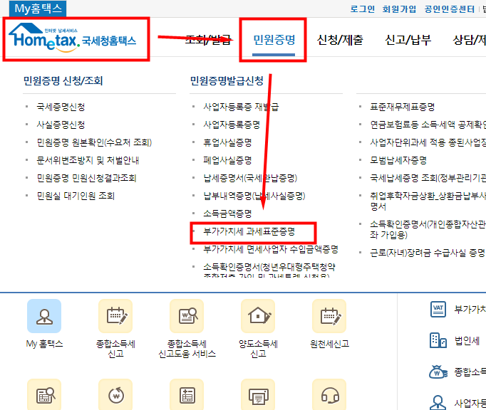 부가가치세 과세표준 증명원 출력 신청