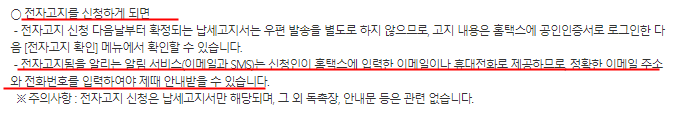 마지막으로 전자고지 신청은 납세고지 정말 해당되며 그의 독촉장이나 안내문은 관련이 없다고 합니다.